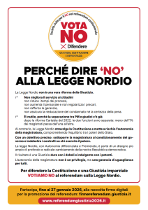 Per difendere la Costituzione e una Giustizia imparziale votiamo NO al referendum sulla Legge Nordio.